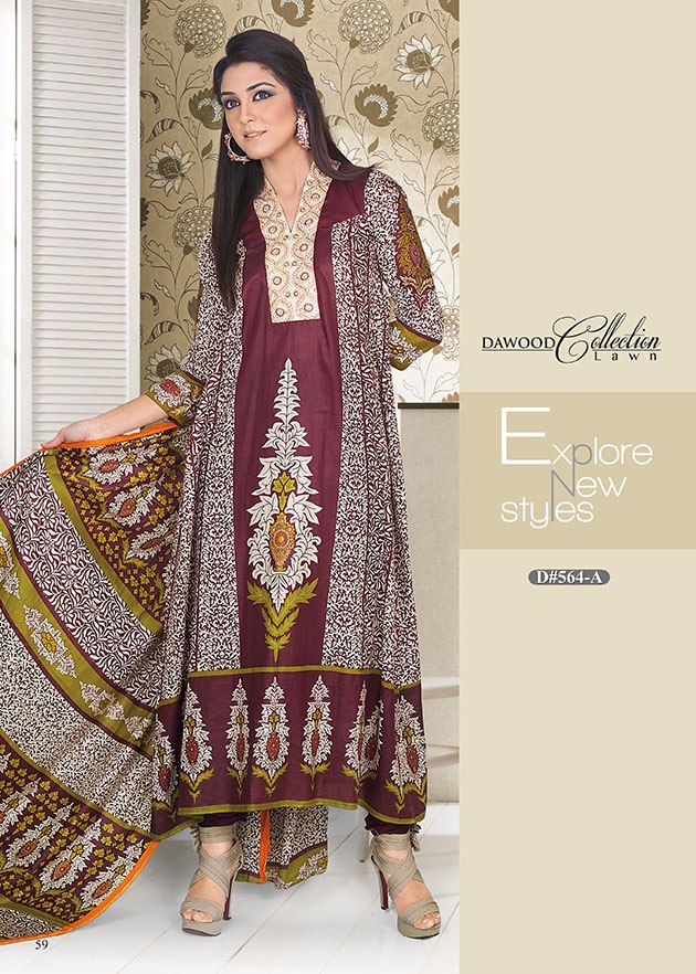 Clothing9 Today pocked up another summer lawn product of Dawood textiles launched 11th March 2013. This lawn magazine official tagged as " DAWOOD Collection Lawn " and Submitted 76 kinds of amazing Lawn patterns presented in Long Shirts, Separate Yoke Shirts, Panels Shirts, Front open Dresses are included in this collection with prints detailing and Needle work Neck designs.Dawood lawn taken inspiration from nature and printed leafs, Flowers, Boti styles applied on sandy base, Plain and Self striped fabric.Undoubtly These DAWOOD Lawn Collection 2013 creates brilliant shine in your personality and boost your grace available only in 900 Pakistani Rupee for a un-stitched piece and ready to wear dress is offered in 1900.Dawood lawn Summer magazine 2013 have Cotton Printed Shirt, Cotton Printed Dupatta paired along with Cotton Dyed Shalwar and total fabric is 7.5 meters added in this single suit.have a look Ideal lawn Collection 2013-2014 perfect for casual style.Below i am going to share a Complete Dawoood lawn magazine and The footage i love hope you all like.Keep visiting Clothing9 for more fashion news.Seperate Yoke Shirts with Churi pajama