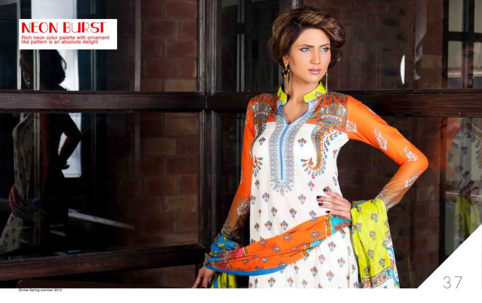 Lawn Fashion developed its roots and this the main reason that we see many designer lawn exhibitions are being organized everyday in different part of Pakistan.Now a days people are brand conscious that is why they prefer branded garments.They want signature pieces and its increased the demand of Lawn fabrics.To cover the needs and demand of fashion industry many old and new Fashion Brands / Designer Introducing latest lawn prints and designs. In Pakistan some big name like Gul Ahmed, Nishat Lawn, Sana Safinaz, Alkaram, Firdous Lawn are some well known stores and they have coolest designs according to the taste of modern lady.There is One another Name in the world of Lawn and that is Five Star Textiles Ltd or people call it Five star lawn too, It also Independently present some hottest prints of lawn. This Season Five Star Brought Divine lawn for ladies which include very eye catchy and attractive Embroidered dresses for Summer 2013.Five Star Divine Lawn Collection 2013 revealed some enthralling designs of lawn in stitched and Raw fabrics by keeping in mind the traditional values.These Five start lawn prints 2013 are suitable for casual wear to Semi formal Wear so What you are waiting for garb a favorite designer lawn Dress and give an early start to summer Wardrobe with Five Star Lawn 2013.