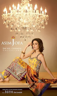 This is party wear collection, brought to you by Clothing9 Blog, The whole range belongs to certified legacy designer Asim jofa prominent as celebrity of fashion industry. Asim jofa has quickly touches the height of success due to vibrant colors of exotic gems designers dresses and his fascination with luxury inspiration. Now he has become the most honored designer, and known as fresh breath for Pakistan fashion industry. This year Asim jofa has knocked the door of fashion markets, and thrown number of seasonal collection for Pakistani women's. Similarly, today we have picked a range of winter party wear from the Asim Jofa Charmeuse collection. The most appraising fashion designers of Pakistan has included a unique twist of designs and prints on raw silk fabric, He has presented the exotic art of Africa, Shirts front parts are made with pure chiffon, and all over embroideries has been spread, Digital printing techniques has been used on back part of shirts. To exude a striking presence asim jofa has paired digitally printed Dupatta, embroidered sleeves, crafted borders, and printed pants in Raw Silk Charmeuse Party Wear Collection 2014. Lets scroll down for more snaps.